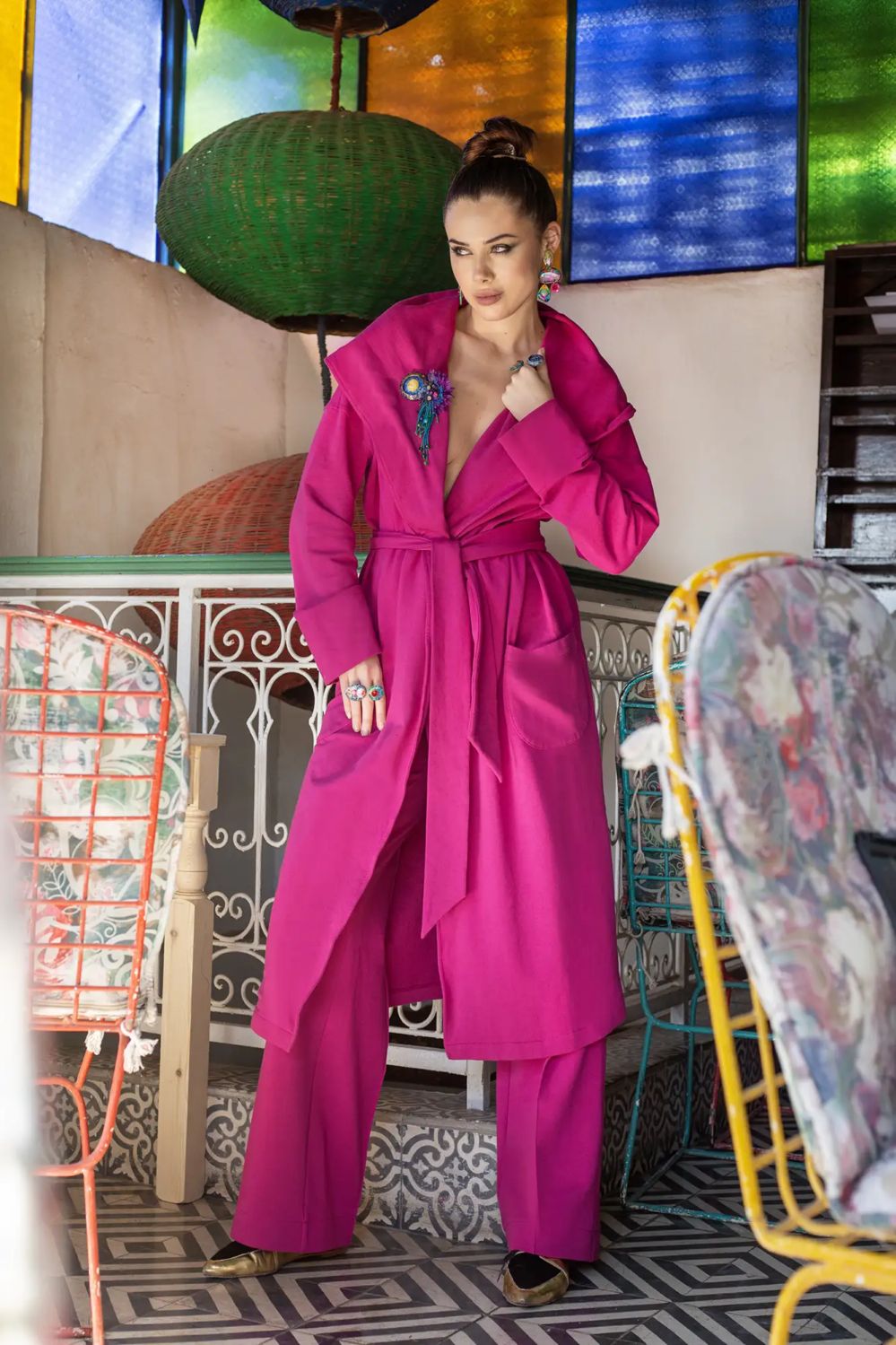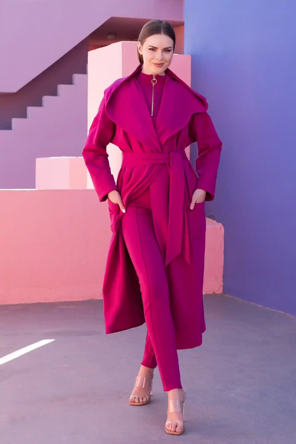 Jeśli chciałabyś wersję glam płaszcza bluzy to idealnie do niej pasuje bluzeczka Top Sport i spodnie Cigarillos lub szwedy w kolorze fuksjowym.